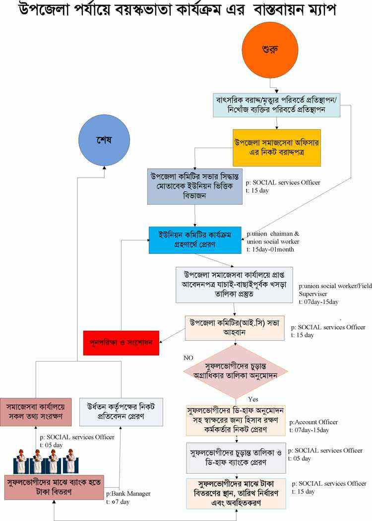 | ২ | উপজেলা পর্যায়ে বয়স্ক ভাতা প্রদানের প্রসেস ম্যাপ | দেখুন | |