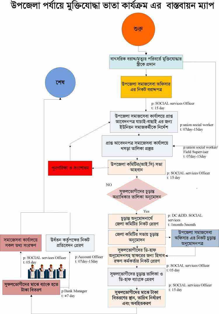 | ৩ | উপজেলা পর্যায়ে মুক্তিযোদ্ধা ভাতা প্রদানের প্রসেস ম্যাপ | দেখুন | |
